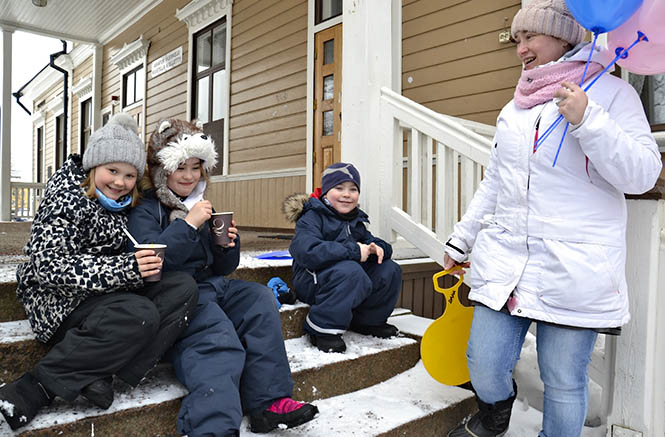 Koko perheen talvitapahtuma oli suunnattu erityisesti alakouluikäisille, jotka saivat maksutta tarjolla ollutta hernerokkaa, grillimakkaraa, mehua ja kahvia. Tätä vanhemmilta perittiin pieni maksu.