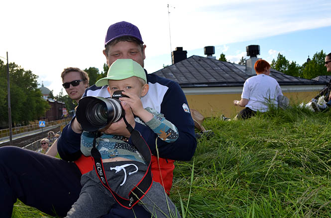 Hanna Pekkalan ja Ilkka Nisulan Luka-pojasta on hyvää vauhtia kasvamassa urheilukuvaaja. Hevoskulttuuriin kasvanut perhe oli saapunut Forssasta ystävien mökille.