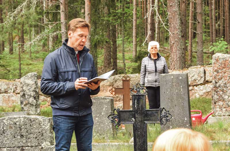 Saareen haudattujen omaiset kunnostivat sukulaistensa hautoja ja istuttivat kesäkukkia. Haminan seurakunnan pastori Kari Rautiainen piti haudoilla lyhyen hartaushetken.