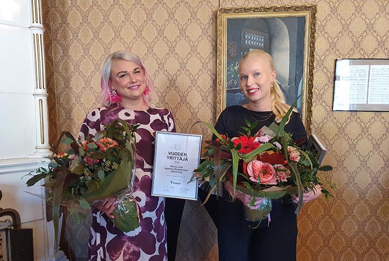Juhlatilaisuuden huipennus oli Haminan Yrittäjien vuoden 2025 yrittäjän sekä 2025 nuoren yrittäjän palkitseminen.