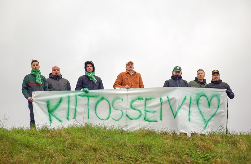 Vielä viimeiset tsemppihuudot ja kiitokset kannattajille, joukkueen kapteeni Nico Pietiläinen johtaa huutokuoroa.