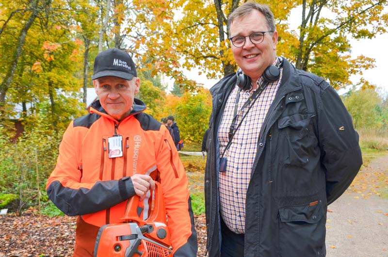 Mika Kauppila (vas.) on Harjun Metsäpäivän isä. – Päivään on osallistunut noin sata nuorta ja heidän huoltajiaan, oppimiskeskuksen rehtori Mika Palosara kertoo.