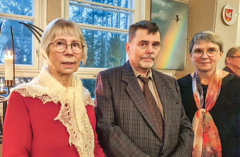 Sihteeri Pirjo Järvenkylä, puheenjohtaja Harri Raussi ja hallituksen jäsen Annemari Takanen ottivat vastaan onnitteluja.