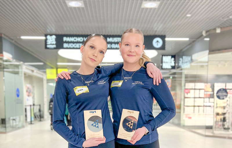 Paras yritys, paras myyntipuhe: Virtaa päivään NYT, Vehkalahden koulu. Kuvassa yrittäjät Venla Tolvanen ja Tytti Hauhia. Kuva Nuorten yrittäjyys ja talous NYT.