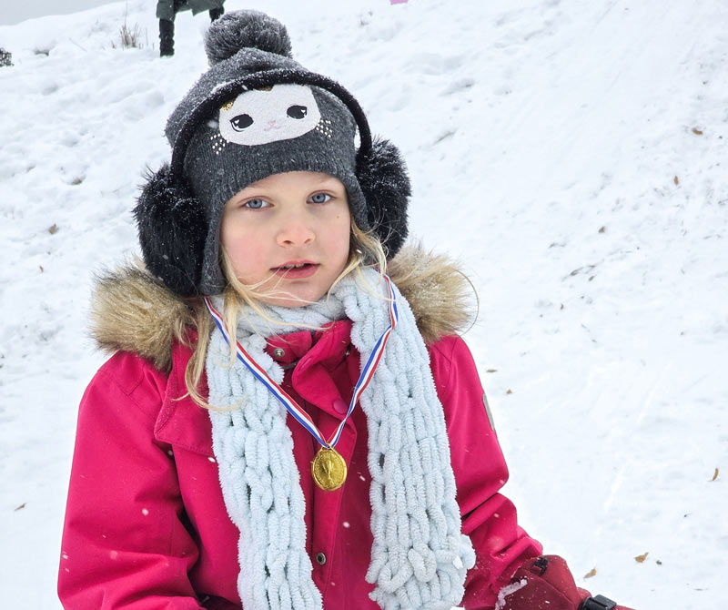 Liekö olympialaiset innostaneet lapsia, sillä tapahtumassa oli usealla lapsella kultamitali kaulassaan.