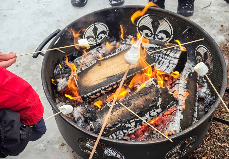 Partiolaisten nuotiolla sai itse valmistaa herkkujen herkkua, paahdettuja vaahtokarkkeja!