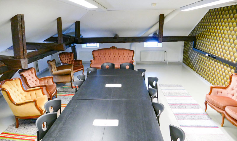 Rautakorttelista voi vuokrata myös eri kokoisia toimistotiloja. Teijo Korpela on tyytyväinen niiden kysyntään, tällä hetkellä vapaana on vain yksi 12-neliöinen työhuone. Tilojen suunnittelussa ja kalustuksessa on haluttu kunnioittaa talon pitkää historiaa.
