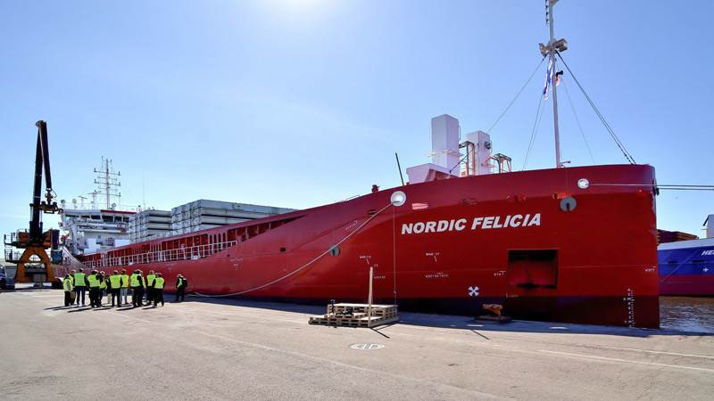 Haminan satamassa oli 20.4. harvinainen laivan kastetilaisuus. Rahtilaiva MV Nordic Felicia saapui ensimmäistä kertaa Suomeen. Laiva on rakennettu Jiangsu Dajin Heavy Industry CO. Ltd -telakalla Kiinassa ja luovutettiin omistajille tämän vuoden alussa. Laivan matka Kiinasta Hyväntoivonniemen kautta Eurooppaan kesti noin 2 kuukautta. Nordic Felicia on niin sanottu MPP- (Multi Purpose) laiva, joka soveltuu sekä kappaletavara- että irtolasteihin. Laivaa operoi Oy Nordic Chartering Ab, yksityinen suomalainen yhtiö, joka harjoittaa merirahtiliikennettä Itämeren ja Länsi-Euroopan satamien välillä.